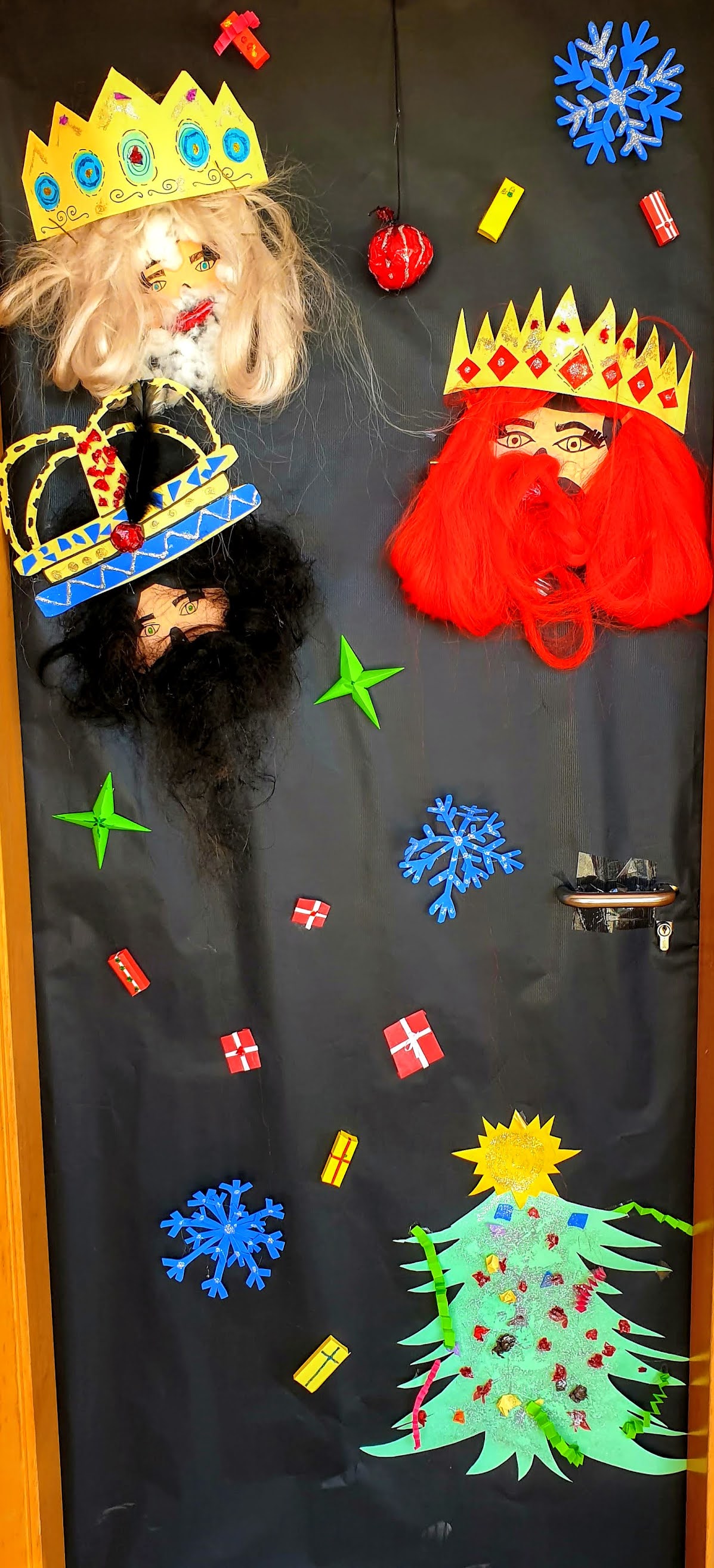 Los alumnos de los diferentes grupos del centro, coordinados por su tutor, han decorado la puerta de su aula de referencia empleando distintos materiales y motivos navideños.
